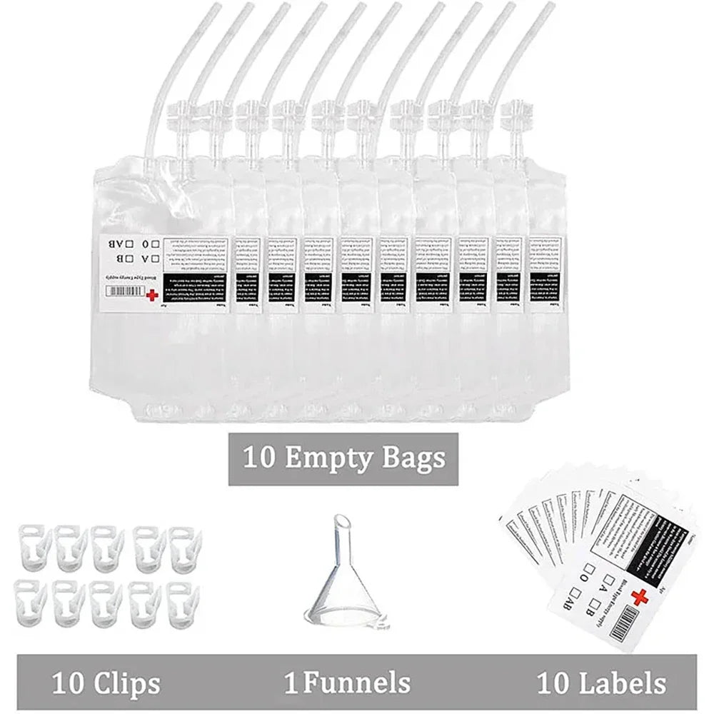 350ml Halloween Blood Bags for Drinks,Blood Bags of Vampire,Energy Drink Bags,Drinkable Blood Bags,Halloween Scary Props