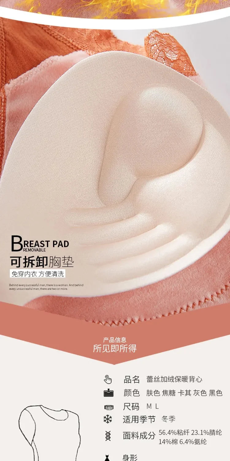 40-90 Kg Plus Size Thermal Underwear Female Velvet Lace V-neck Sexy Slim Warm Vest Camisole Cotton Tank Tops термобелье женское
