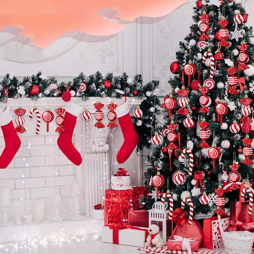 Candy Decorations for Christmas Tree,Red And Gold Candy Cane,Pine Cones,Christmas Home Decoration 2025,Xmas Tree Ornament