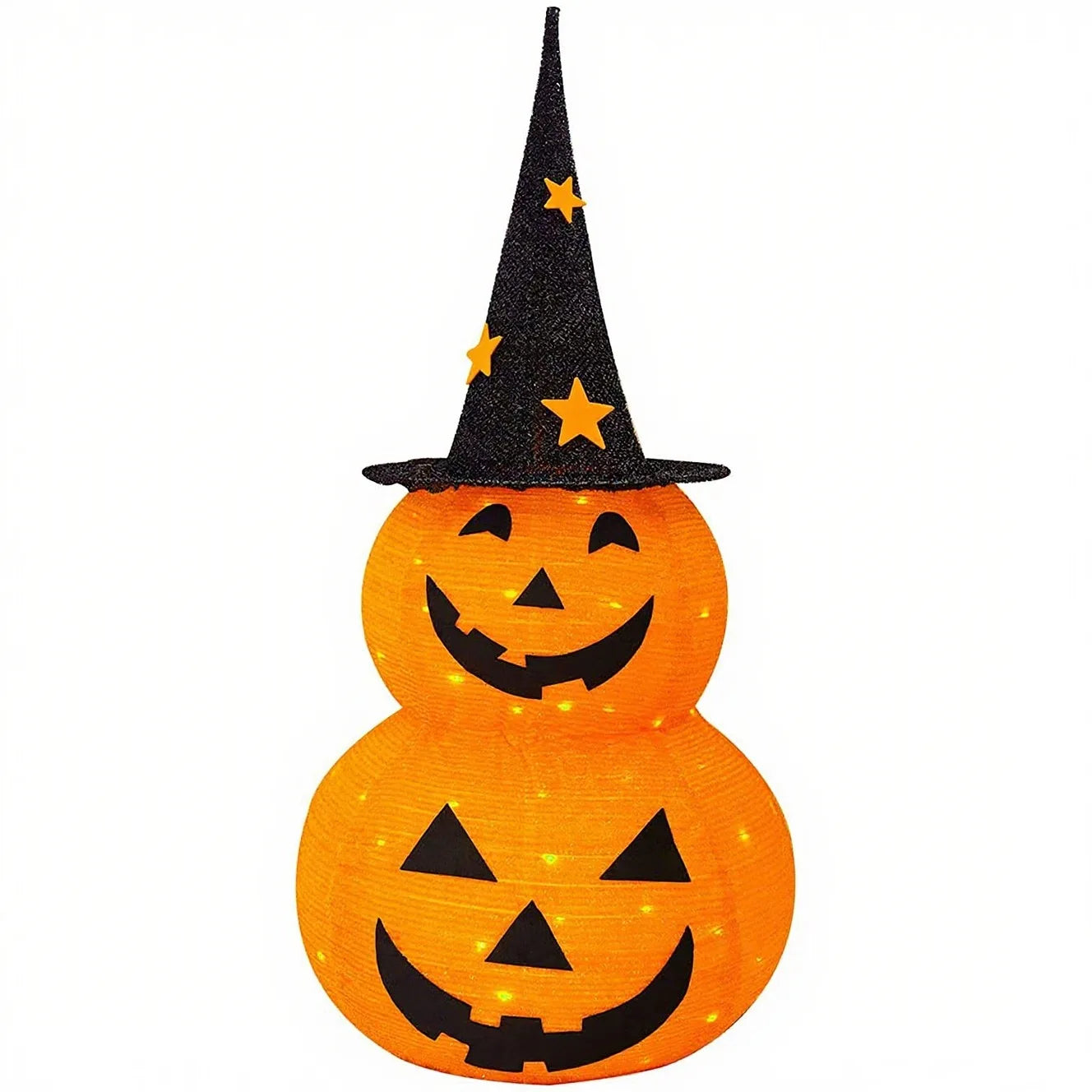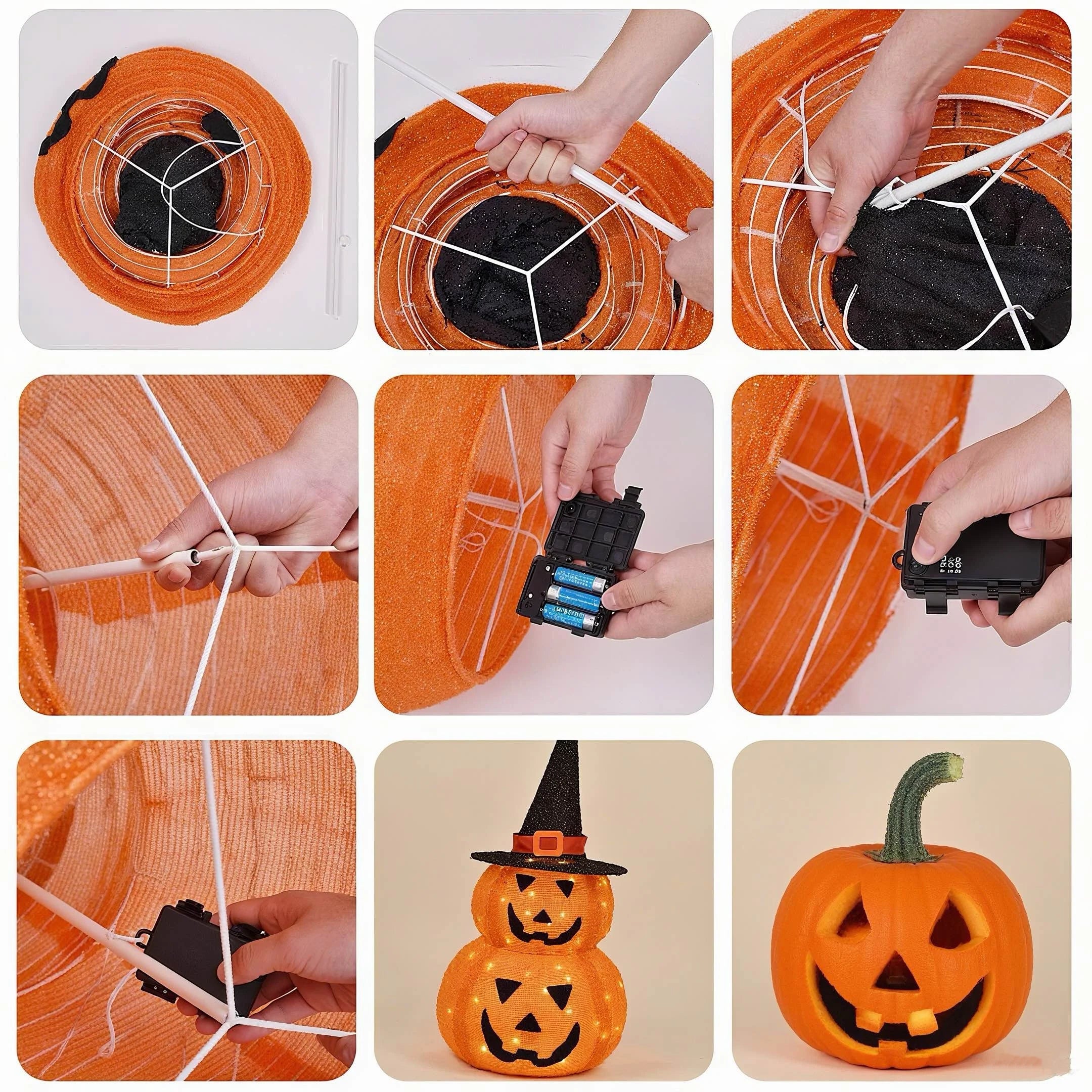 Collapsible Folding Halloween Pumpkin Lantern LED Light Easy Installation Pull Up With Decorations Quickly Installed