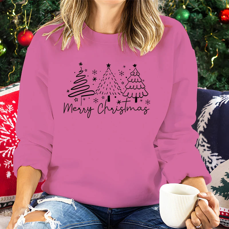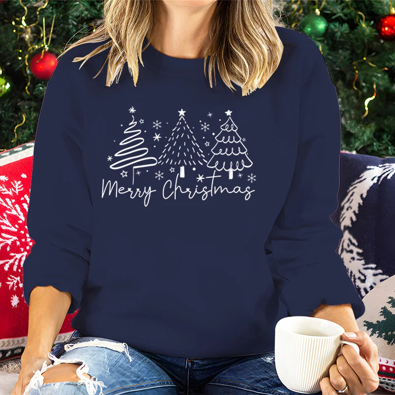 Merry Christmas Tree Trending Sweatshirts Women Funny Festive Fashion Casual Hoodies Trendy Christmas Tree Design Holiday Hoodie