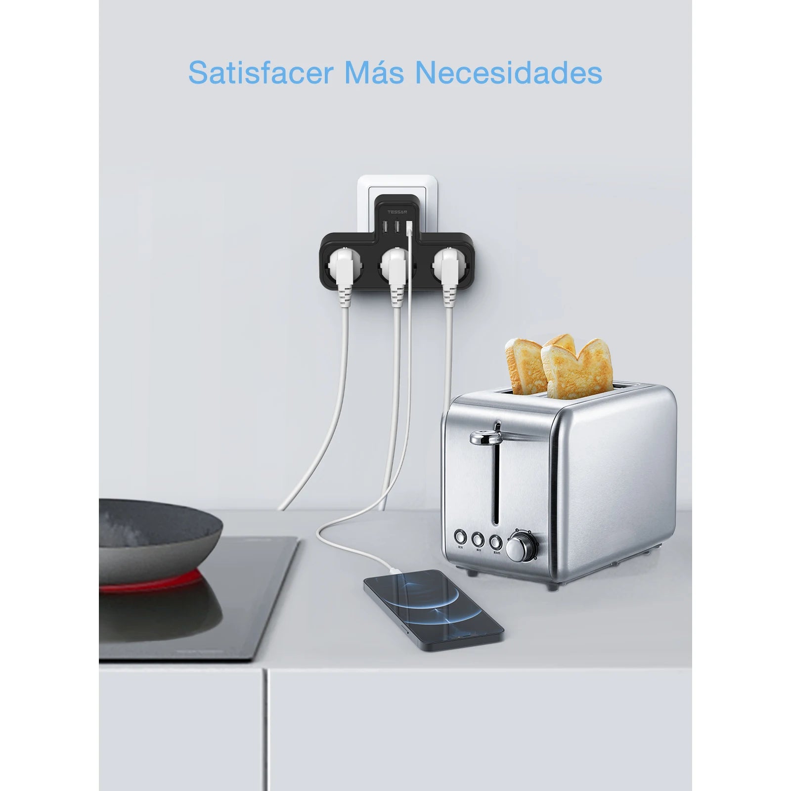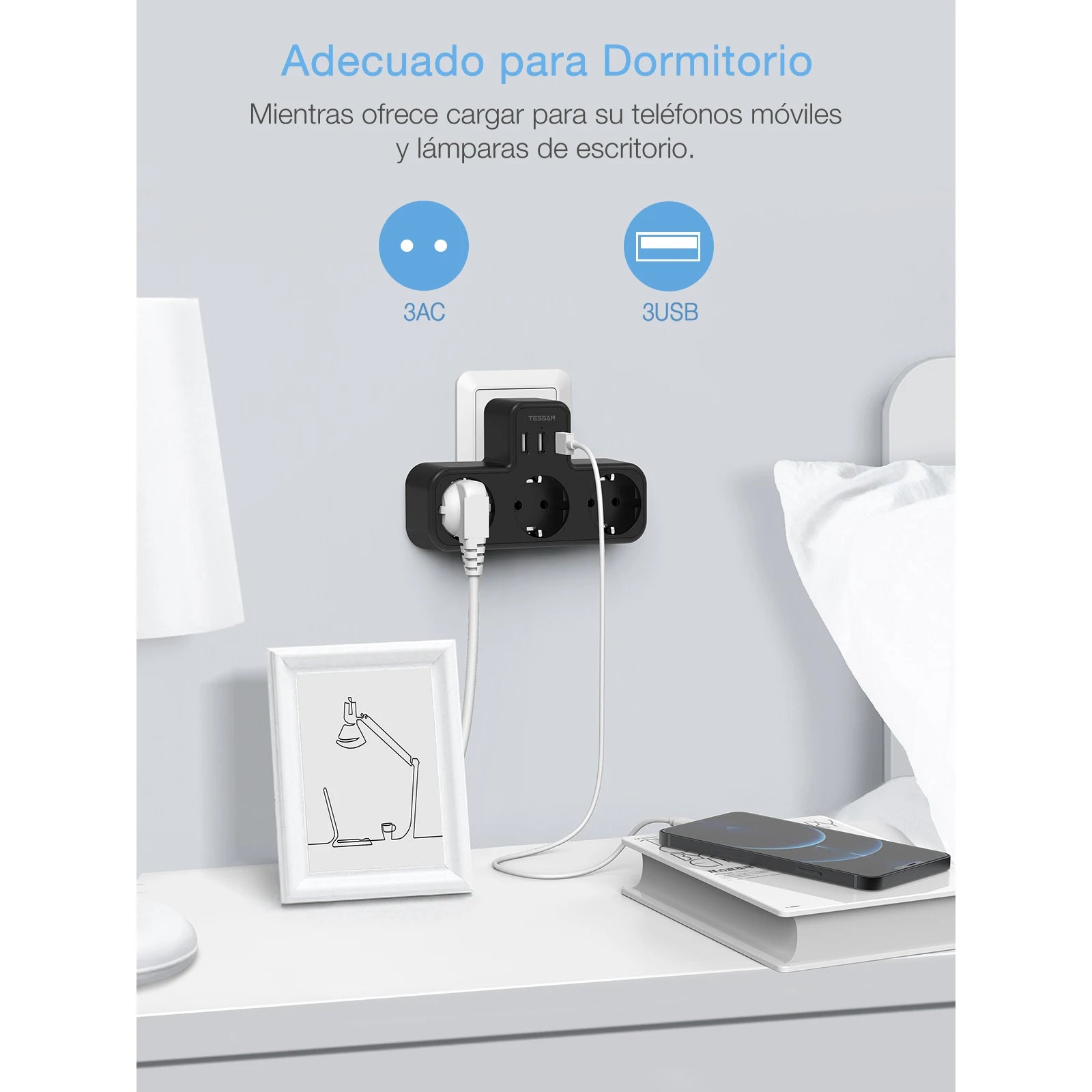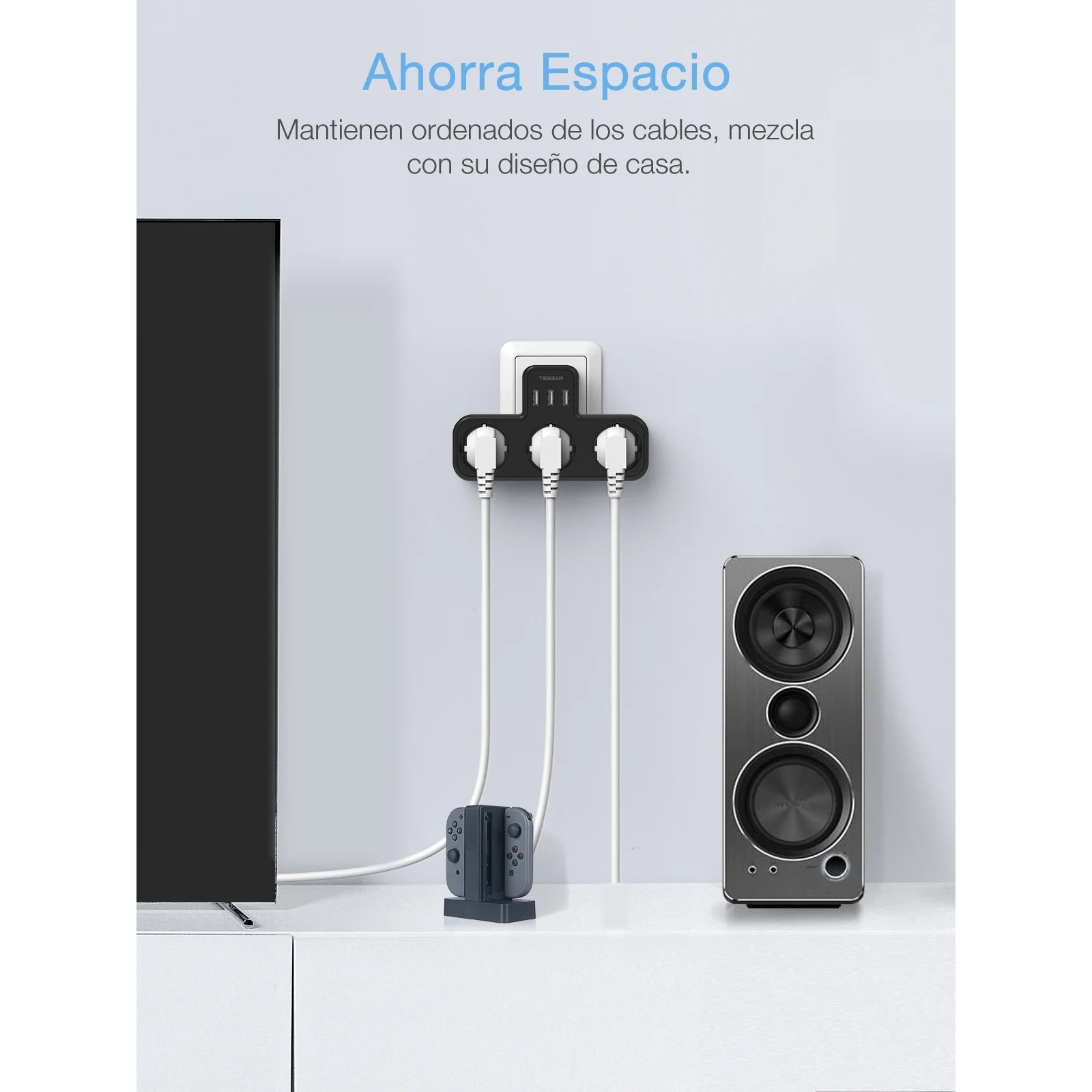 TESSAN EU Plug Power Strip with 3 AC Outlets +3 USB Ports, 6 In 1 Wall Charger Power Socket Adapter Overload Protection for Home