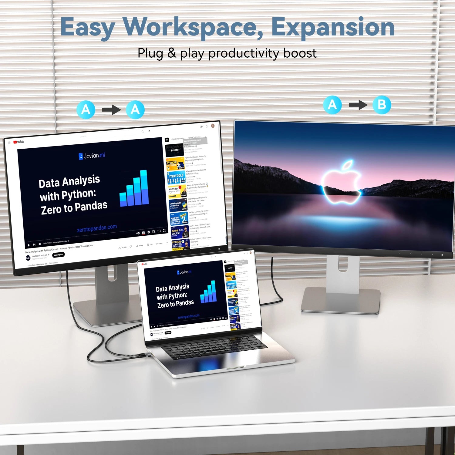 【Plug and Play】No driver or software required. Connect your usb-c devices to 8K or 4K120Hz gaming monitors and TVs,Enjoy high-quality video with no loss in picture quality.
