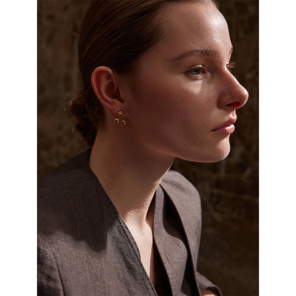 Yhpup 316L Stainless Steel Metal Chic Cherry Golden Stud Earrings Water Resistant Charm Fashion Jewelry 18K PVD Plated Wholesale