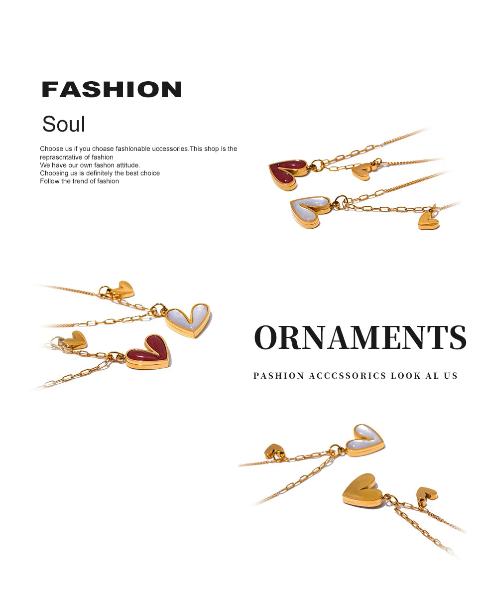 Yhpup Red Enamel White Natural Shell Stainless Steel Heart Pendant Necklace Trendy Exquisite Jewelry Attractive Accessories
