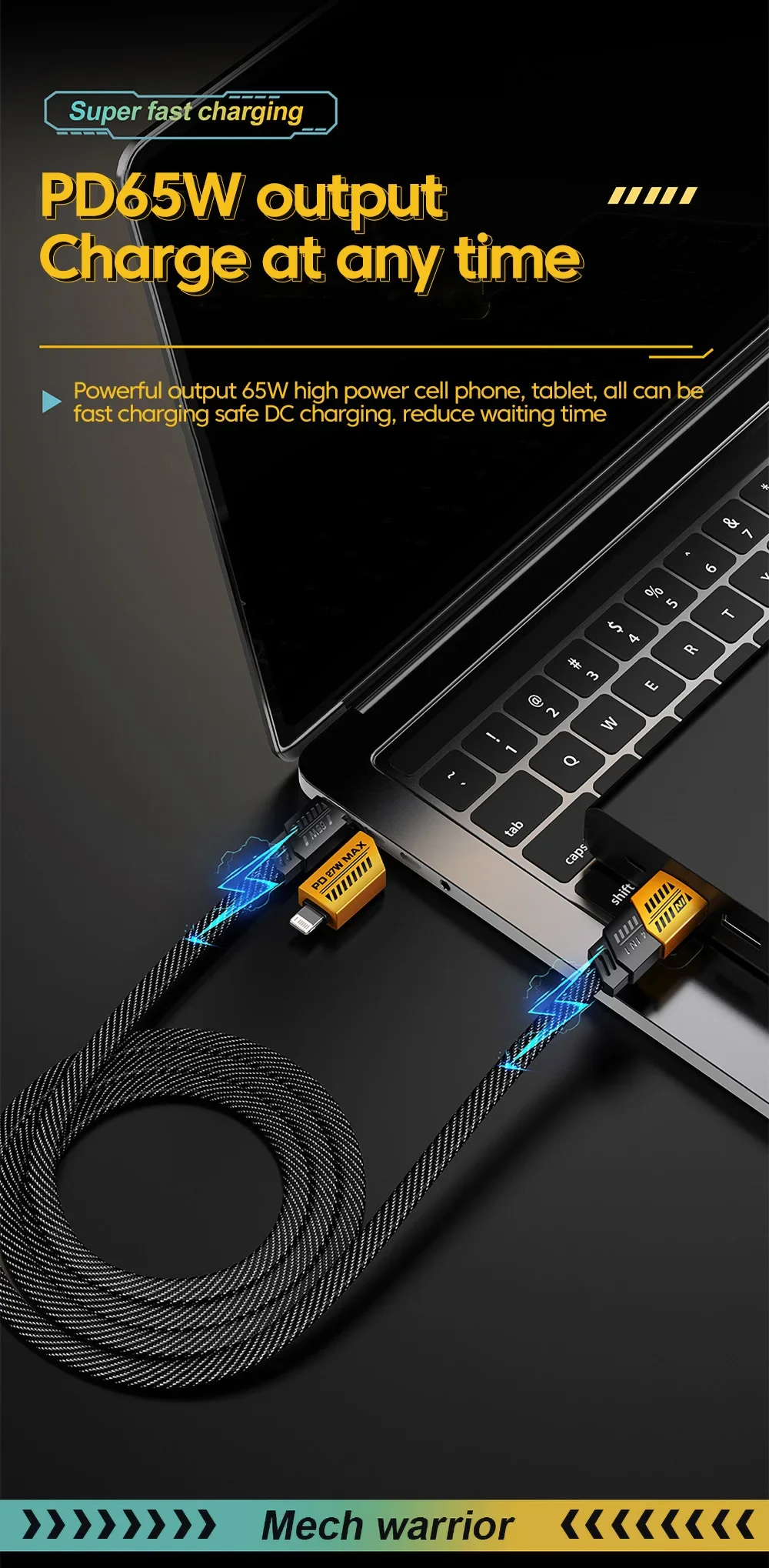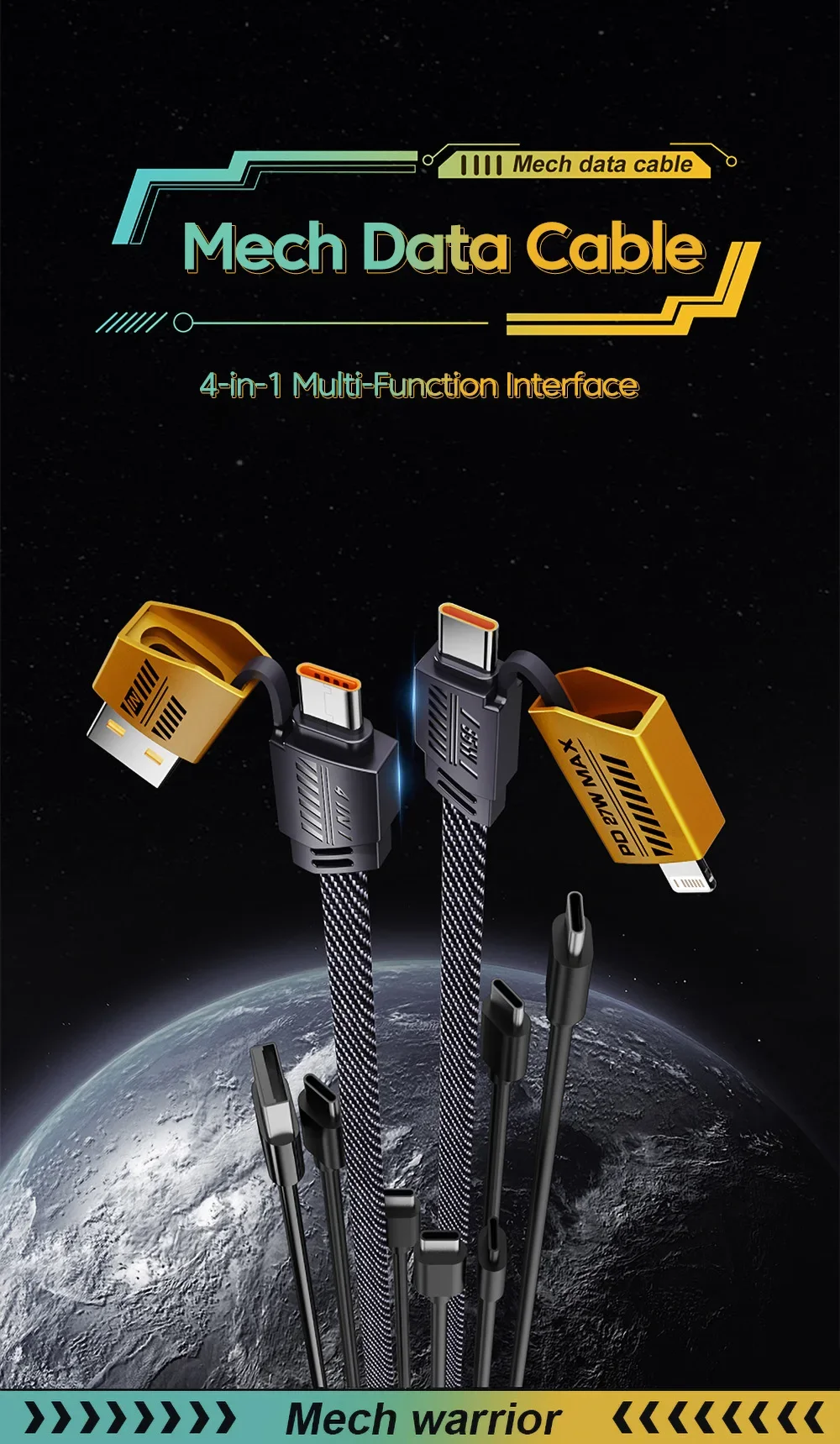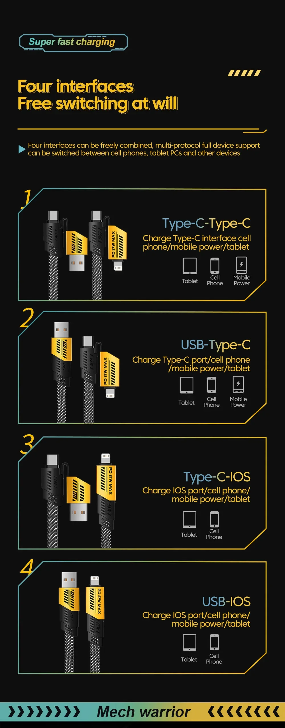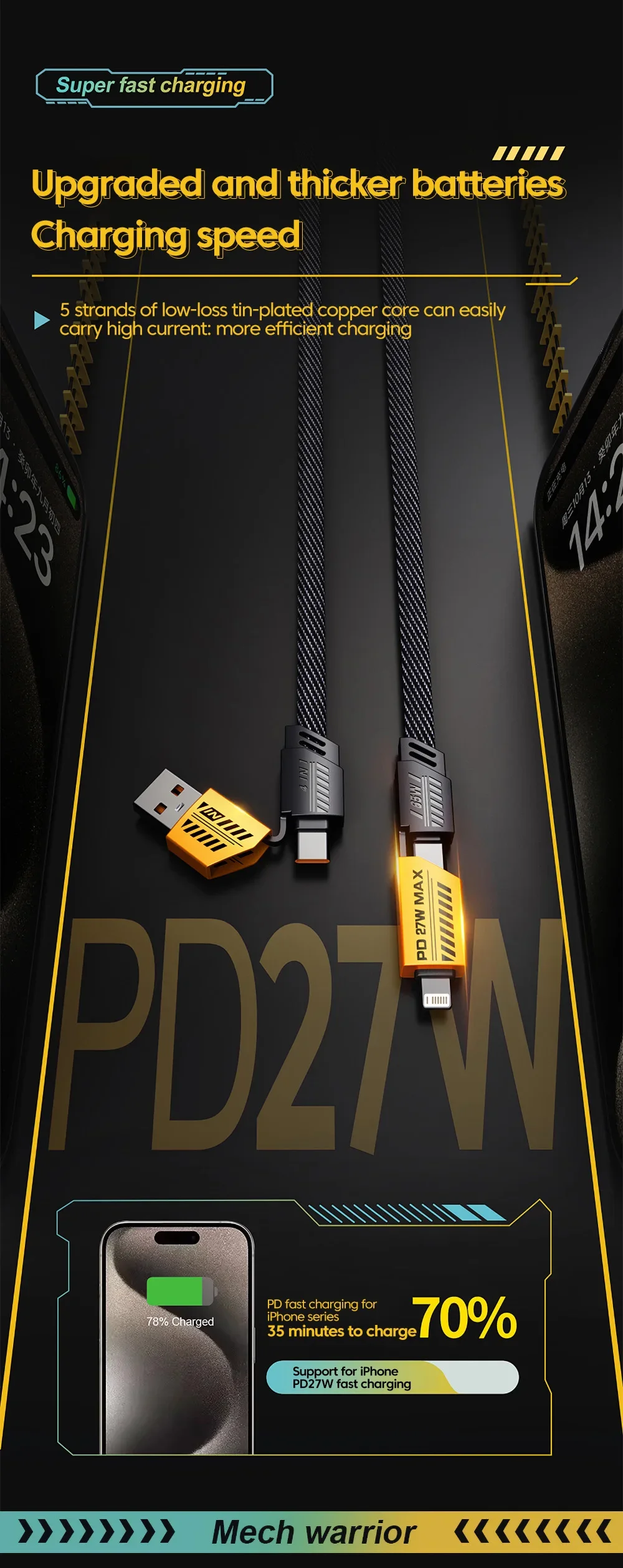 4 in 1 PD 65W 27W USB Cable Type C Dual Connector Lighting Mecha Style Fast Charging USB C Cable For iPhone 15 Samsung Xiaomi