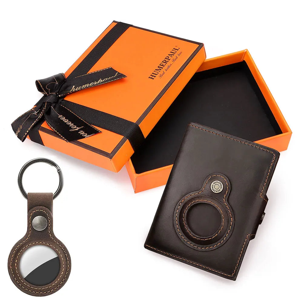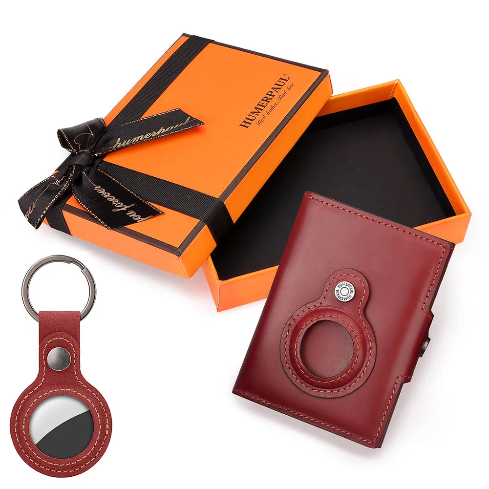 Anti-scan Magnet Credit Card Holder Wallet Genuine Leather Automatic Pop Out Aluminum Smart Wallets Luxury AirTag Purse Set