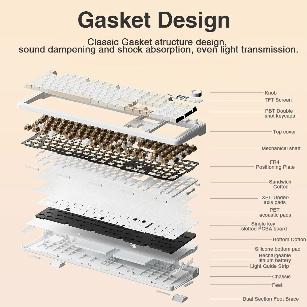 AULA F108 pro Wireless Bluetooth Keyboard Macro Gaming keyboard Gasket Hot-swap Full Size Keyboard with TFT Smart Display