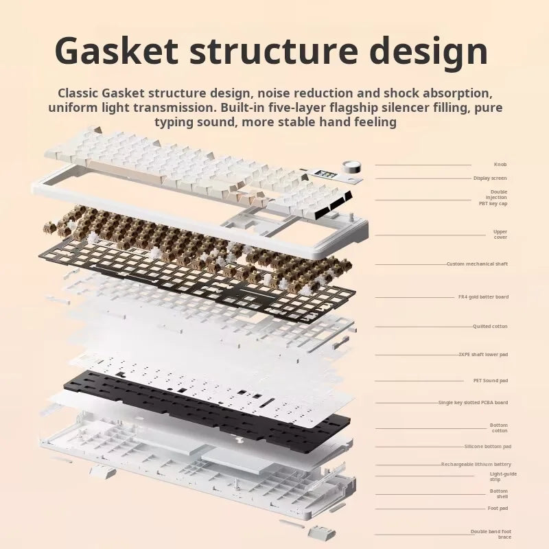 AULA F108Pro/F108 Wireless Bluetooth tri-mode connection, multi-functional display, Gasket structure, RGB lighting effects