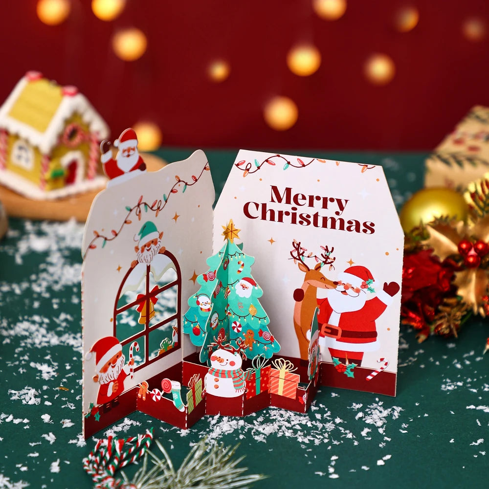Cat Xmas Party Greeting Cards Christmas TreeThree-dimensional Pop Up Card With Envelope 3D Postcard Holiday Supplies