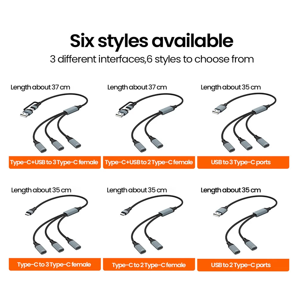 Elough Type C HUB USB Splitter Connector OTG Adapter USB/USB C to 3 Type C Splitter Data Transfer Read U Disk/Card For Laptop PC