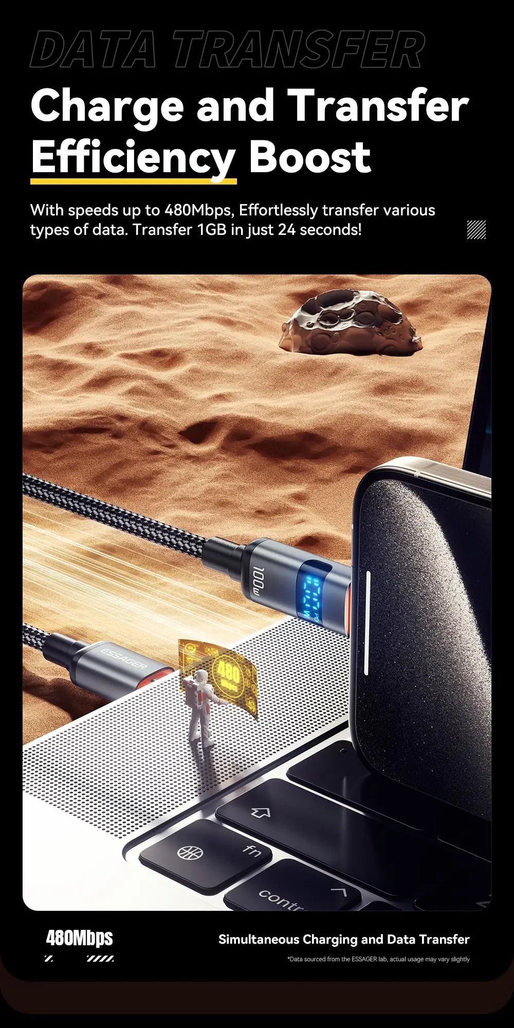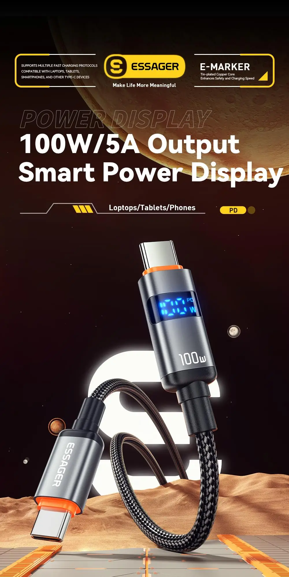 Essager 100W USB C to Type C Digital Display Cable Fast Charging 5A Type C to Type C Cable For MacBook pro Xiaomi Huawei Samsung