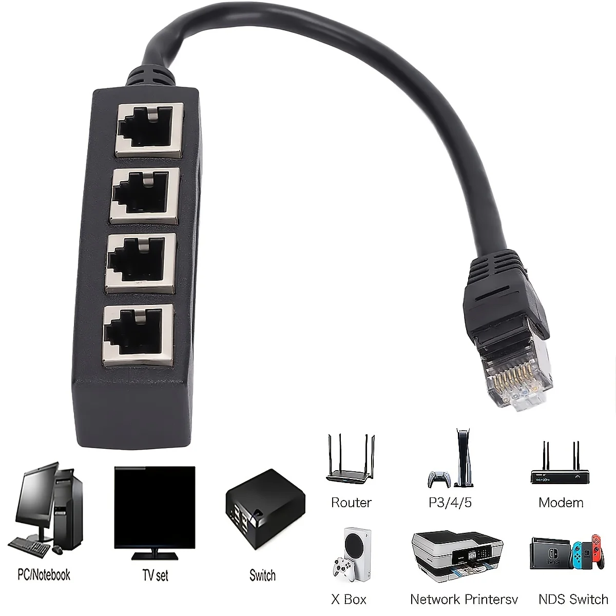 Ethernet Splitter, RJ45 1 Male to 4 x Female LAN Ethernet Splitter Adapter Cable Suitable Super Cat5,Cat5e,Cat6,Cat7 LAN Adapter