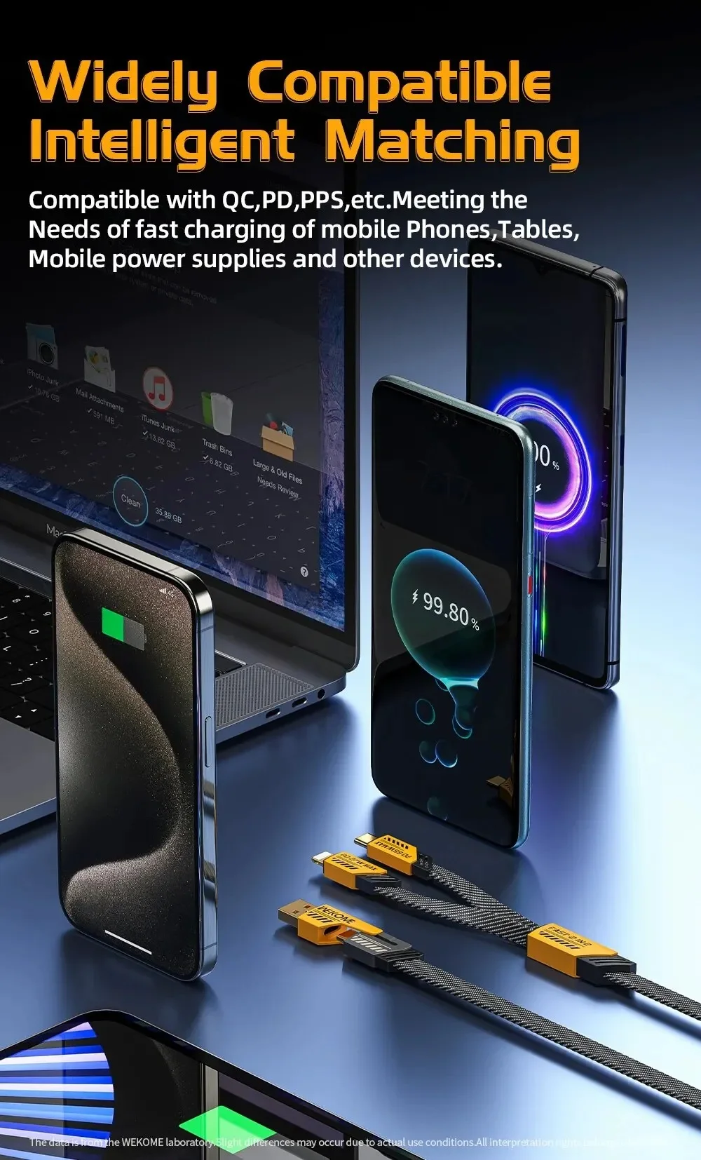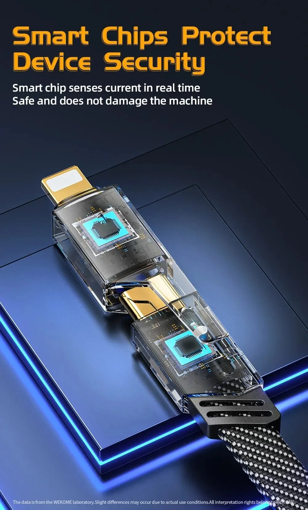 Four-in-one Multi-function Data Cable, USB-A/IPH/TYPE-C Port Conversion, Suitable for Charging Various Mobile Phone Models.