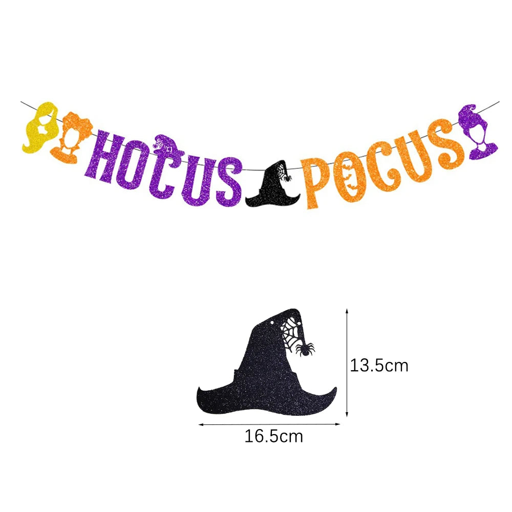 Halloween Hanging Banner Garland Bunting Pumkin Ghost Bat Paper Banner Door Hanging Ornaments Halloween Xmas Party Decoration