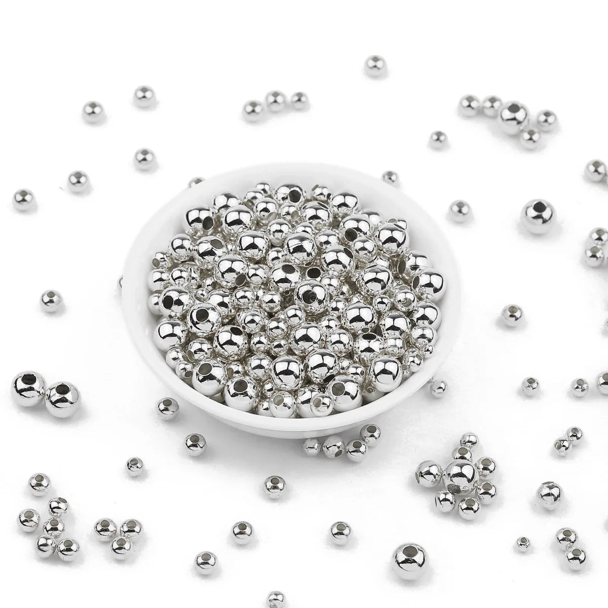 JHNBY Gold Plated Metal beads 2/3/4/5/6/8MM Round Iron Spacer Loose Beads For Jewelry Bracelets Necklace Making DIY Accessories