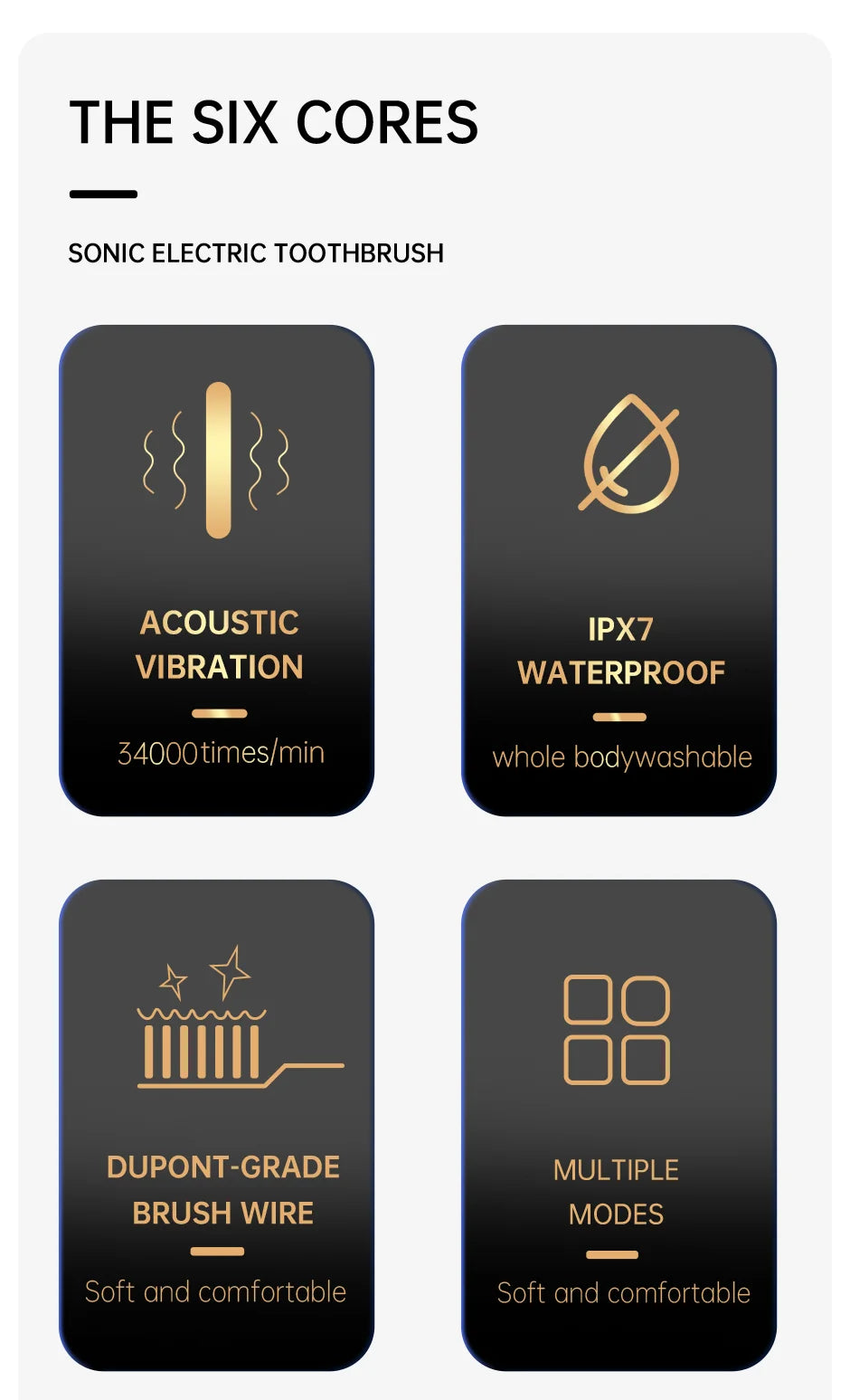 Package included: 1*Electric Toothbrush Body / 4*Toothbrush Heads / 1*Charging Cable / 1*Instructions