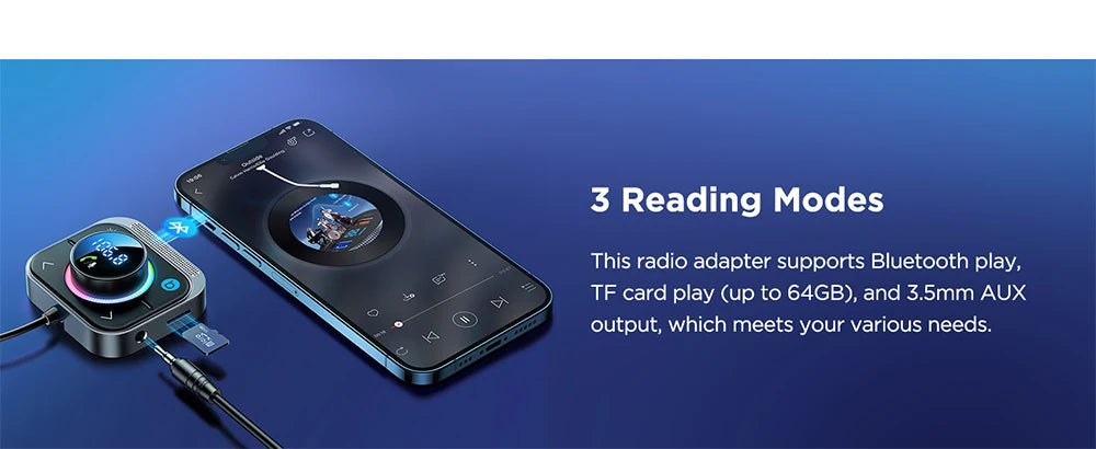 This radio adapter supports Bluetooth play, TF card play (up to 64GB), and 3.5mm AUX output, which meets your various needs.