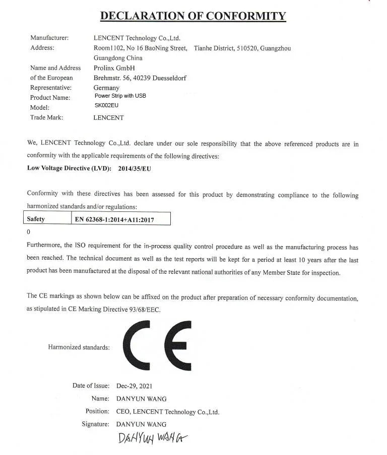 SPECIFICATIONSBrand Name: LENCENTGrounding: Standard GroundingOutlets Number: 4Type: Extension SocketExtension Cable Length: 2mSurge Protector: YesWIFI: NoOrigin: Mainland ChinaOverload Protection: YesHign-concerned Chemical:... Read more