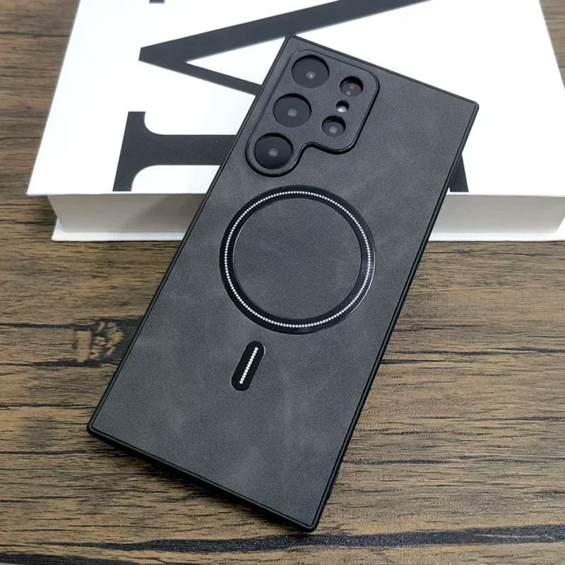 Luxury Matte Leather Case For Samsung Galaxy S25 S24 S23 S22 S21 Ultra Plus FE Note 20 S 23 22 For Magsafe Wireless Full Cover