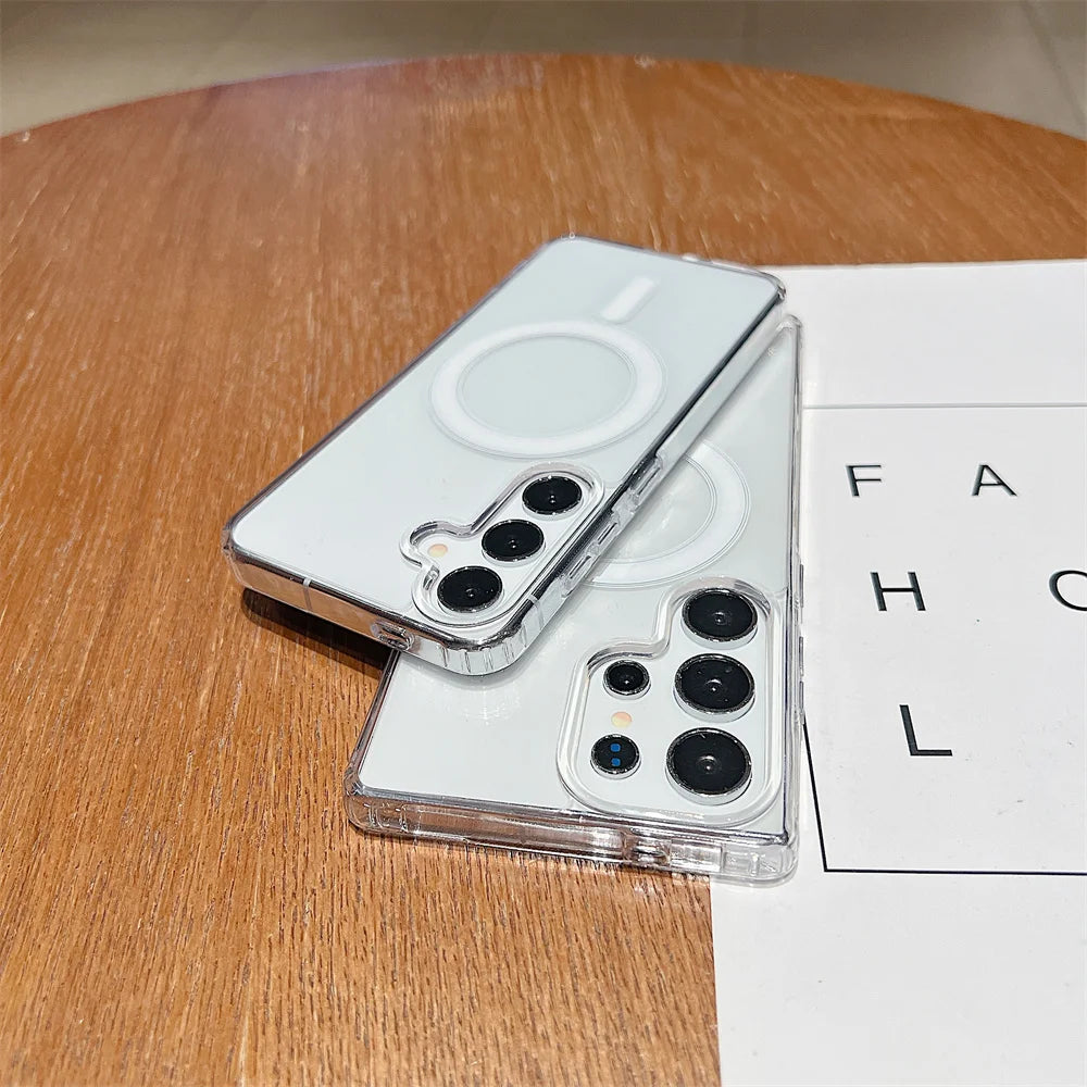 Magsafe Magnetic Charge Phone Case For Samsung Galaxy S25 S24 S23 Ultra S22 Plus S21 FE A16 A15 A35 A55 Clear Acrylic Slim Cover