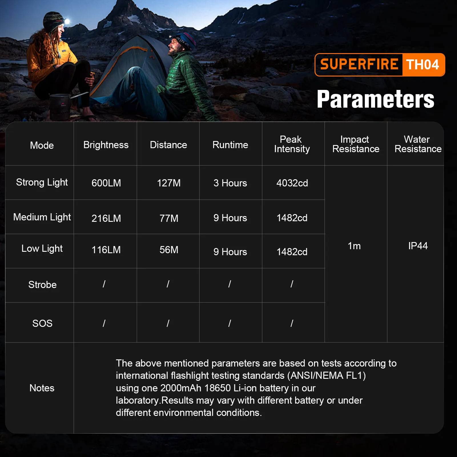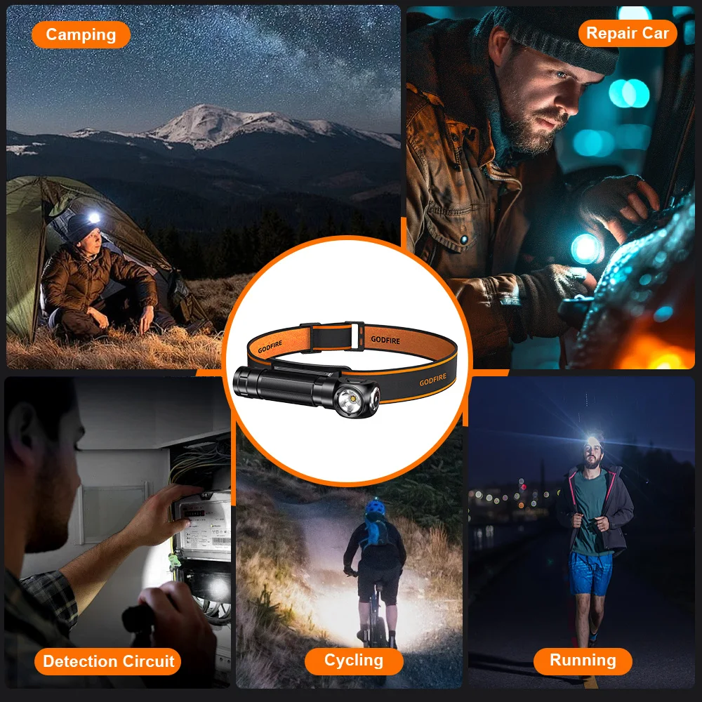 New SUPERFIRE TH04 LED Headlamp Type C Rechargeable 90° Headlight 18650 Flashlight with Indicator Magnet Tail, Head Flashlight