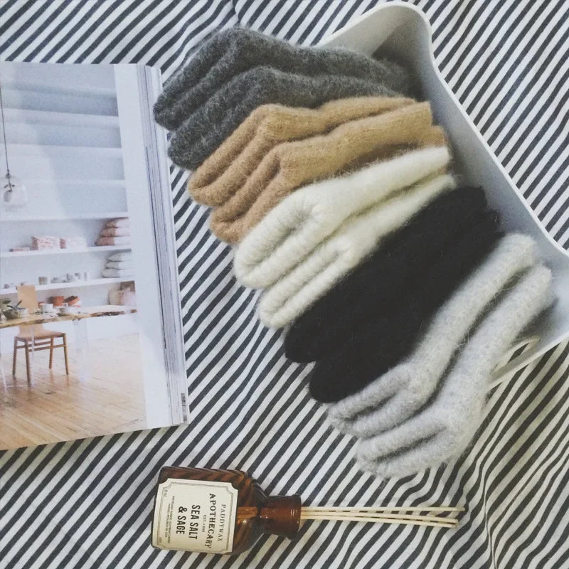 New Women Winter Keep Warm Plus Cashmere Solid Elasticity Soft Full Fingers Mittens Gloves Imitation Rabbit Fur Knitted Cute