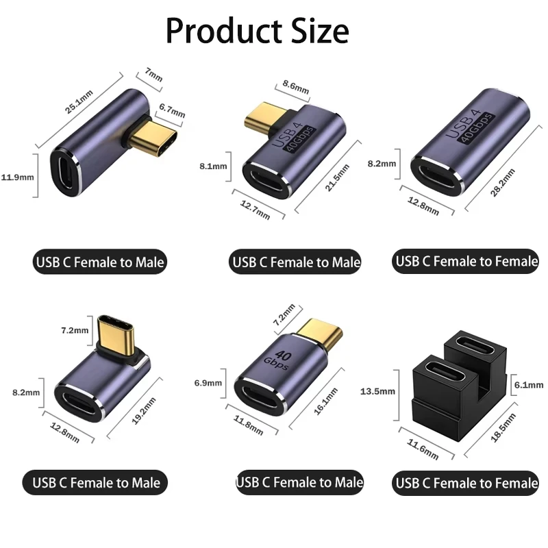 NNBILI USB Type-C Adapter For Macbook 90 Degree Quick Charge Converter Male To Female 100W 5A 40gbps PD Data Transfer 8K60HZ
