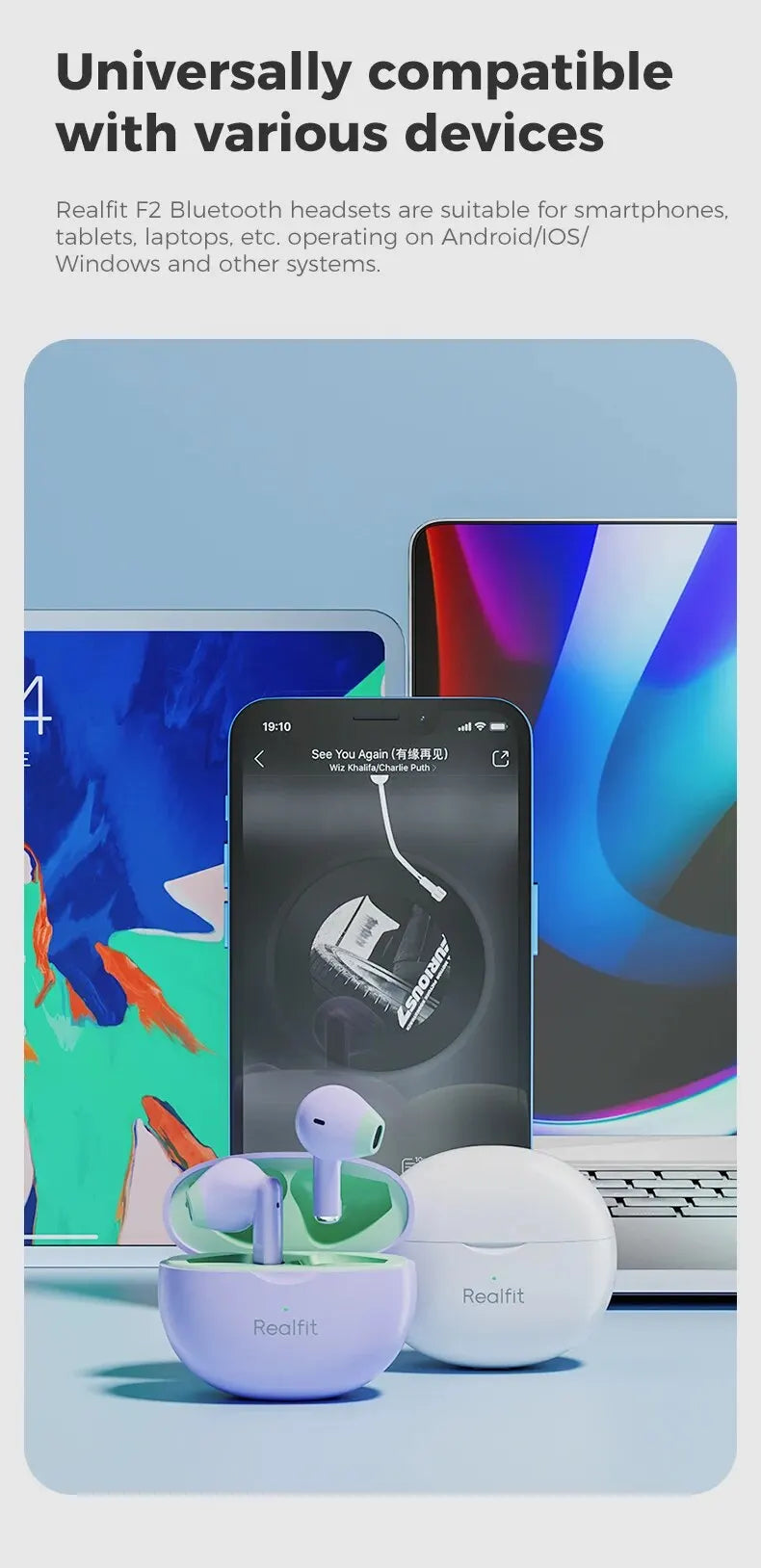 Realfit F2 Bluetooth Earphone Excellent HIFI Quality TWS Wireless Earbuds Wholesale for realme xiaomi