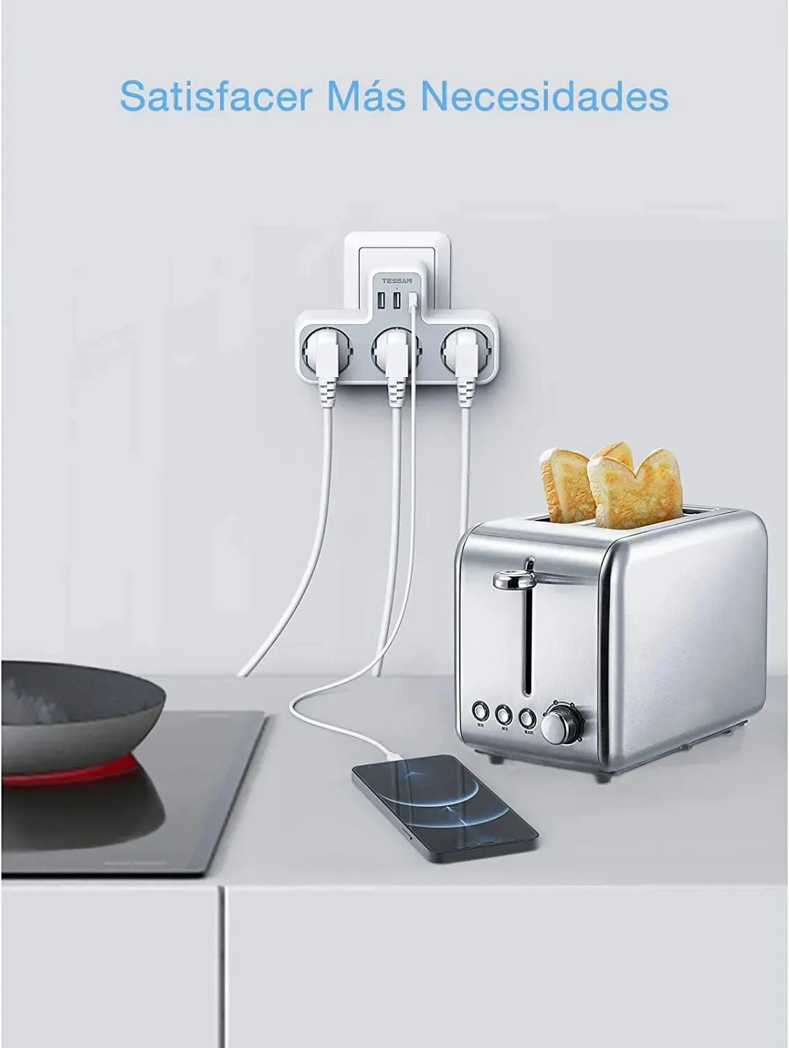 TESSAN EU Plug Power Strip with 3 AC Outlets +3 USB Ports, 6 In 1 Wall Charger Power Socket Adapter Overload Protection for Home