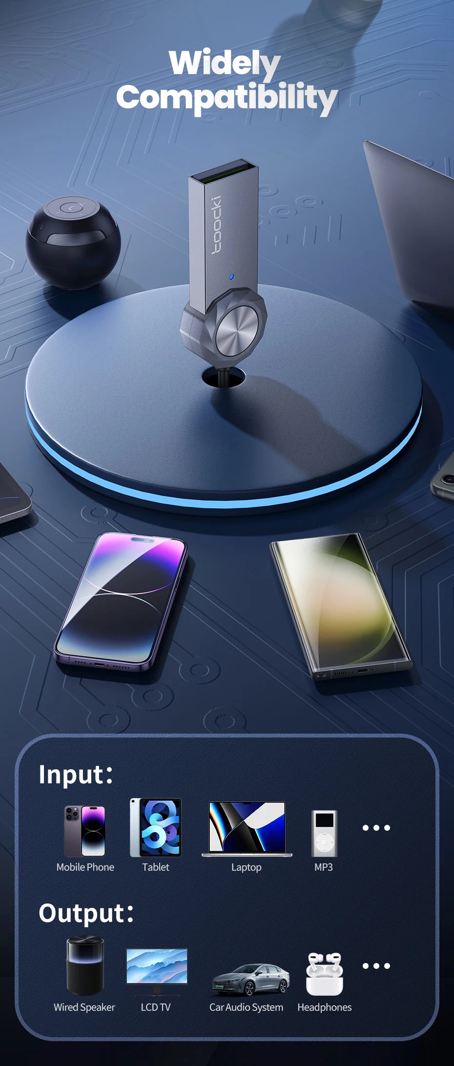 Toocki Wireless Bluetooth 5.1 Receiver Adapter 3.5mm Jack Audio Music Dongle USB Car Bluetooth Transmitter for Aux Car Speaker