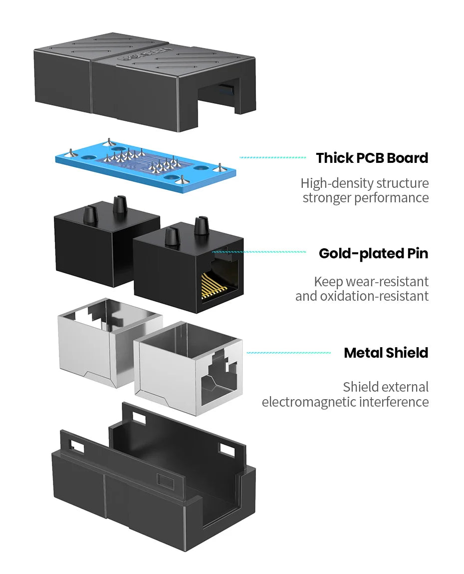 *UGREEN RJ45 coupler Ethernet Connector Female to Female is made of high quality ABS material, flame retardant and stable.