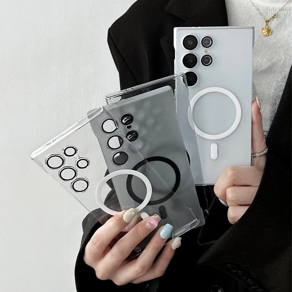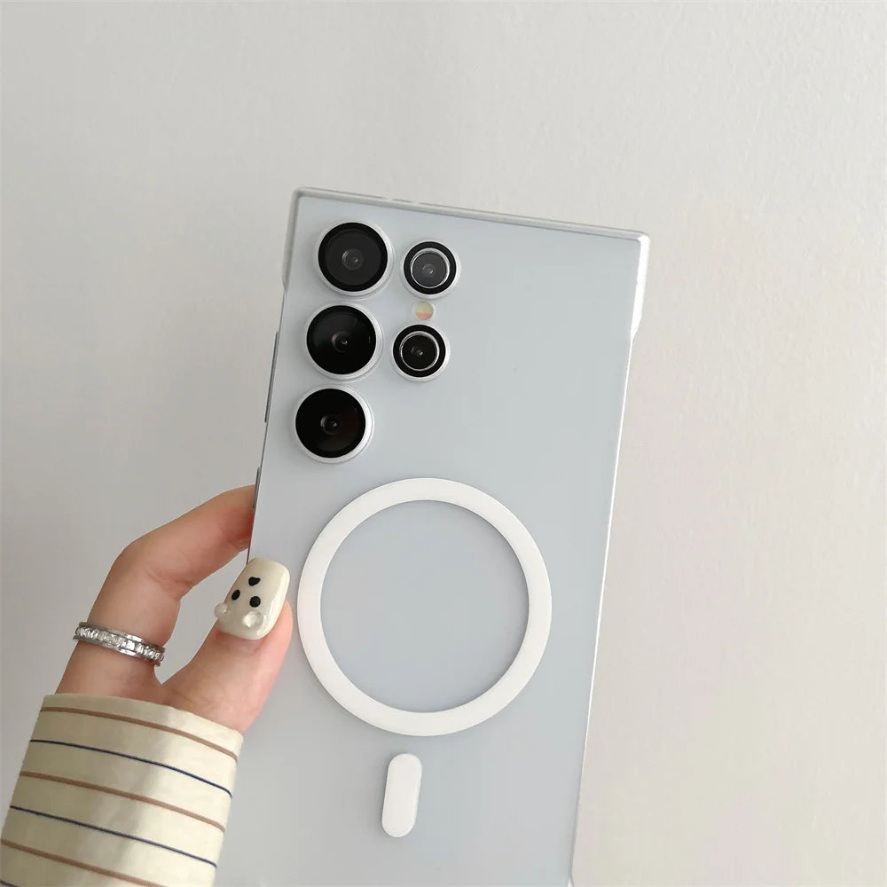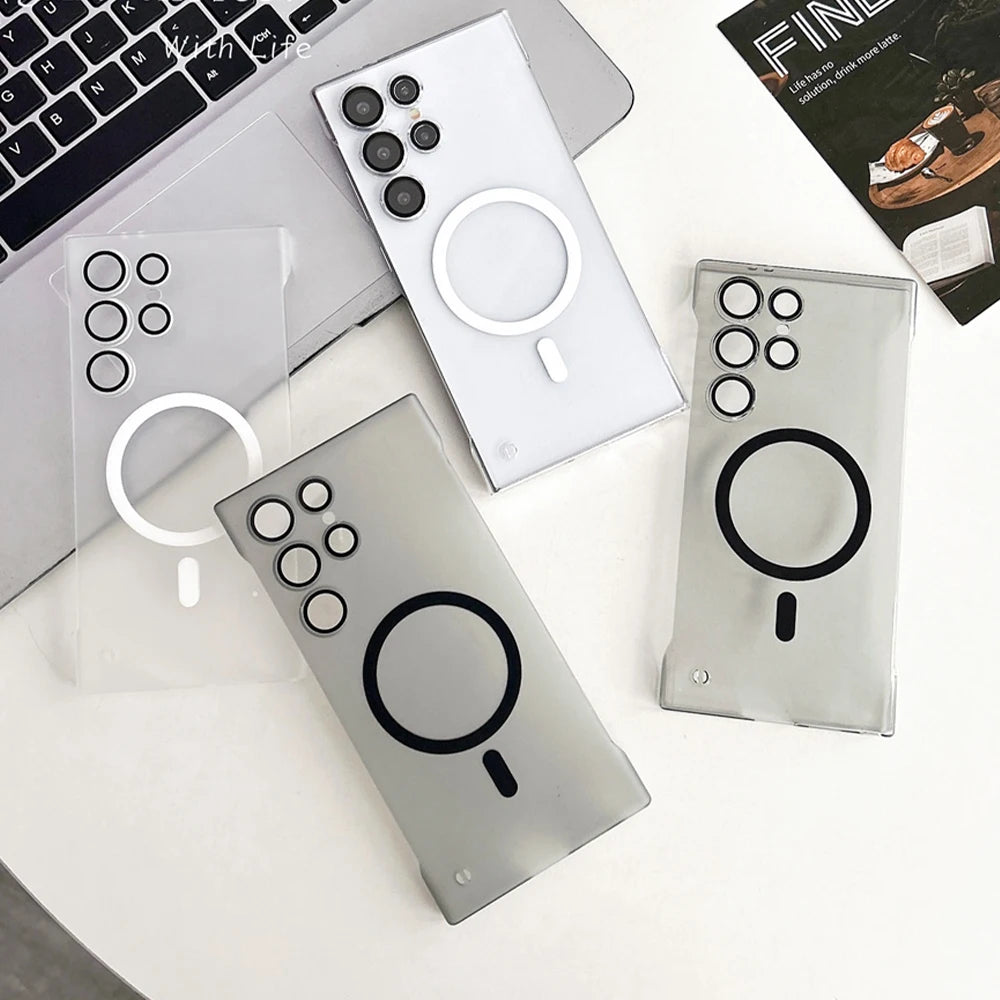 Ultra delgado para Magsafe Clear Frameless funda de teléfono para Samsung S24 Plus S22 S23 Ultra magnético carga inalámbrica cubierta sin bordes