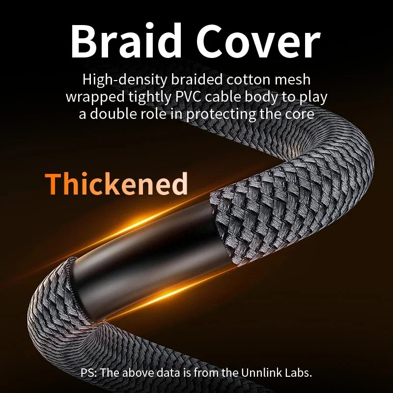 Upgraded tinned copper core, plus aluminium foil, ground wire, metal woven mesh to prevent signal crosstalk, more stable