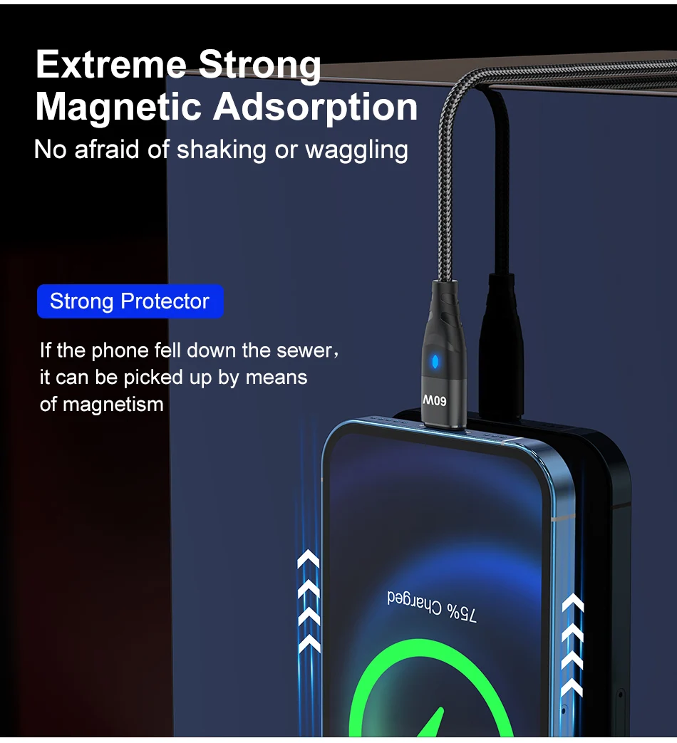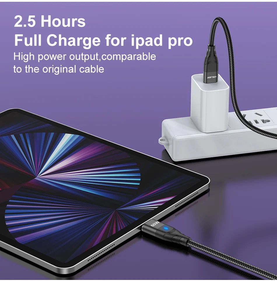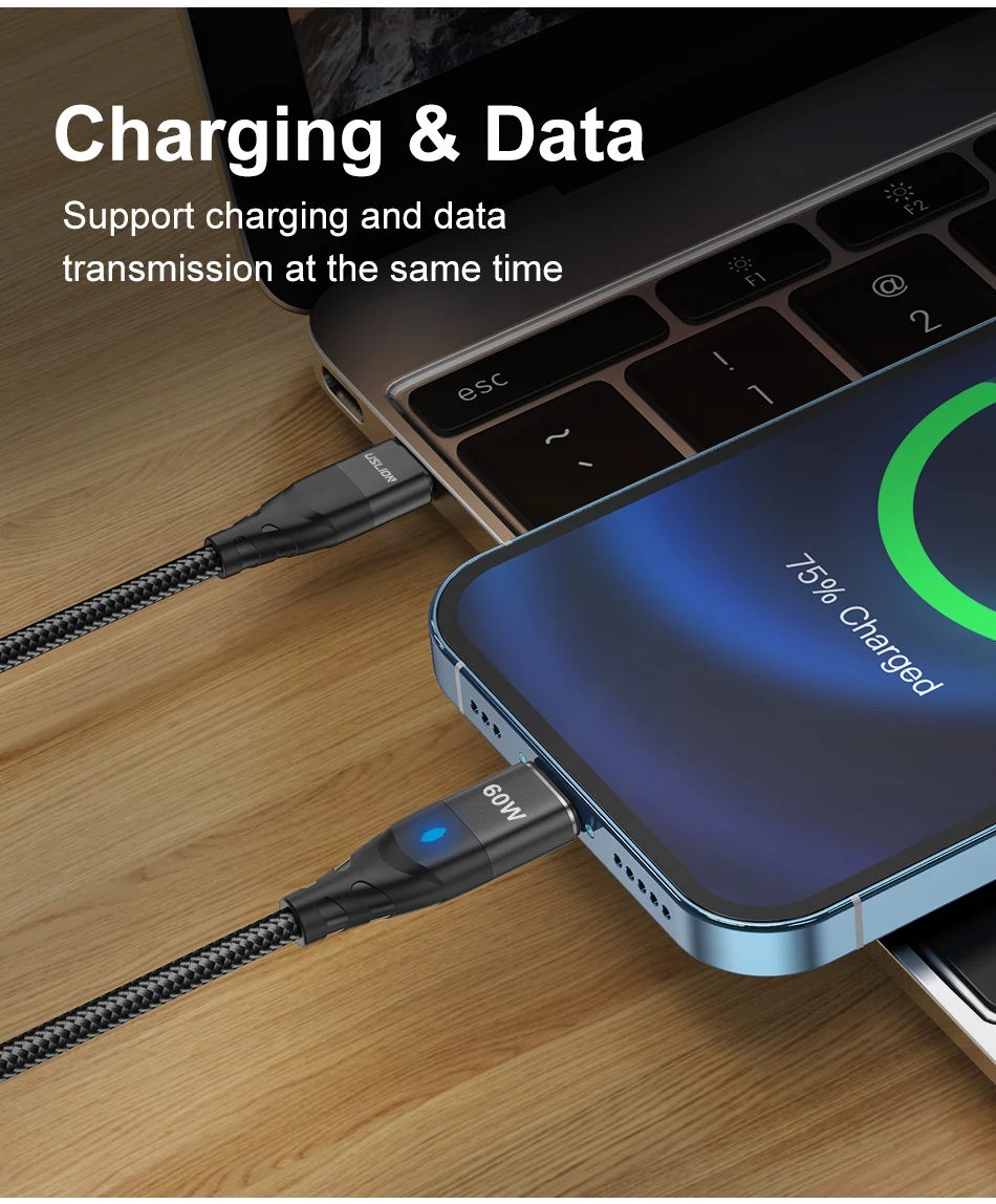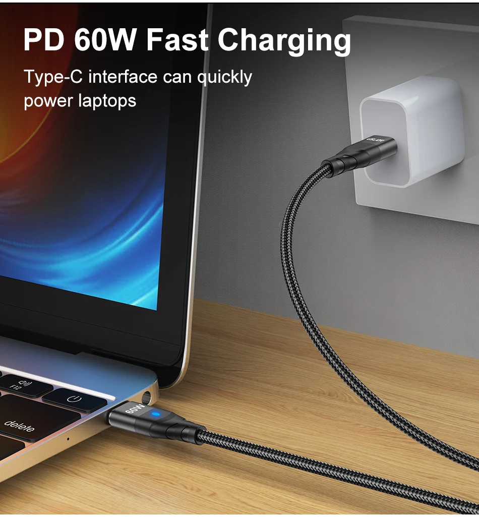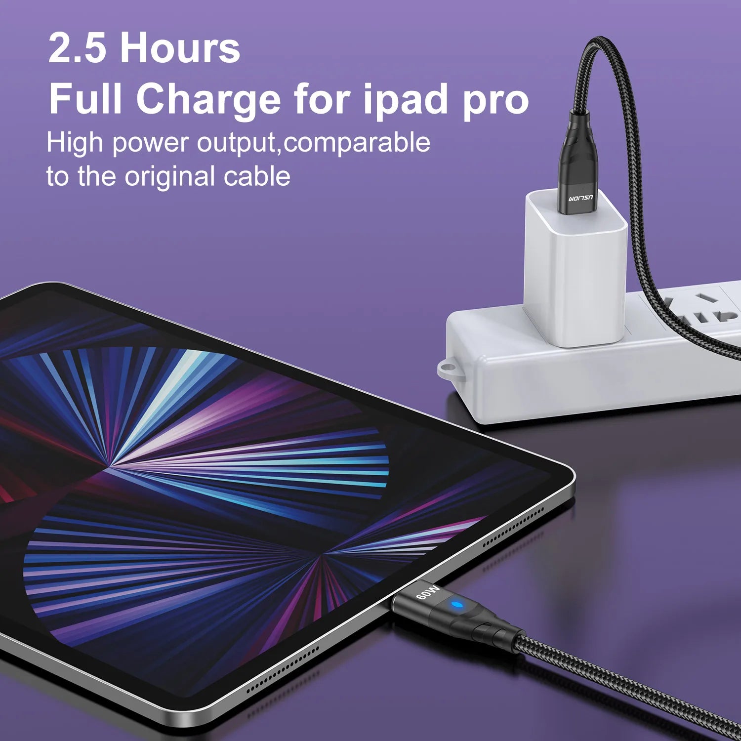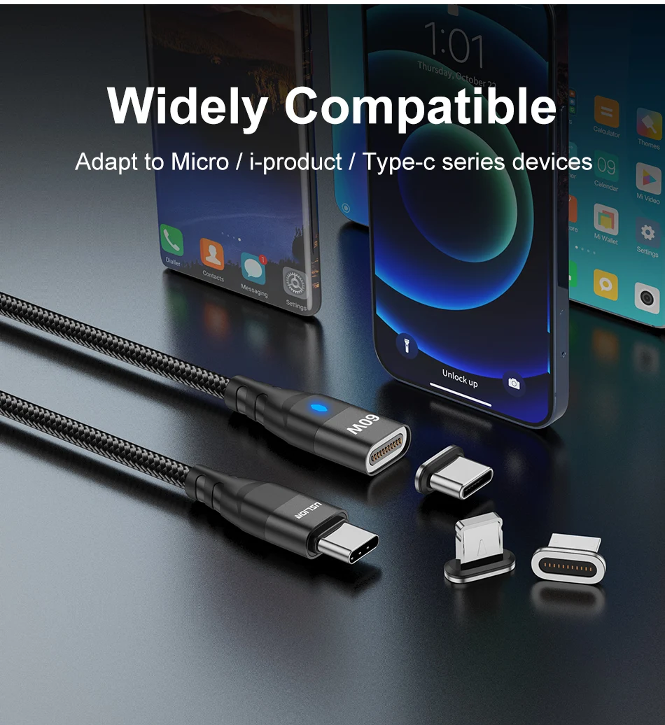 USLION PD 60W Magnetic Fast Charger Cable for iPhone 14 13 Pro Max Xiaomi 12 POCO USB C To Type C Data Charging Wire for Macbook