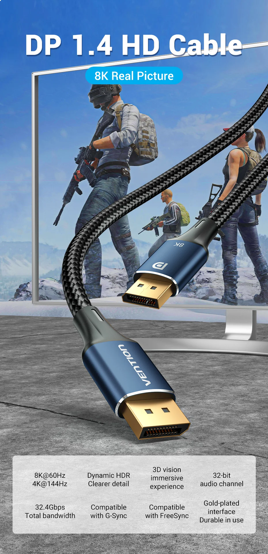 1) DisplayPort 1.4 version:Zinc Alloy Shell, Nylon Braided Cable. Resolution up to 8K@60Hz, 4K@144Hz, 2K@165Hz, 1080P@240Hz.
