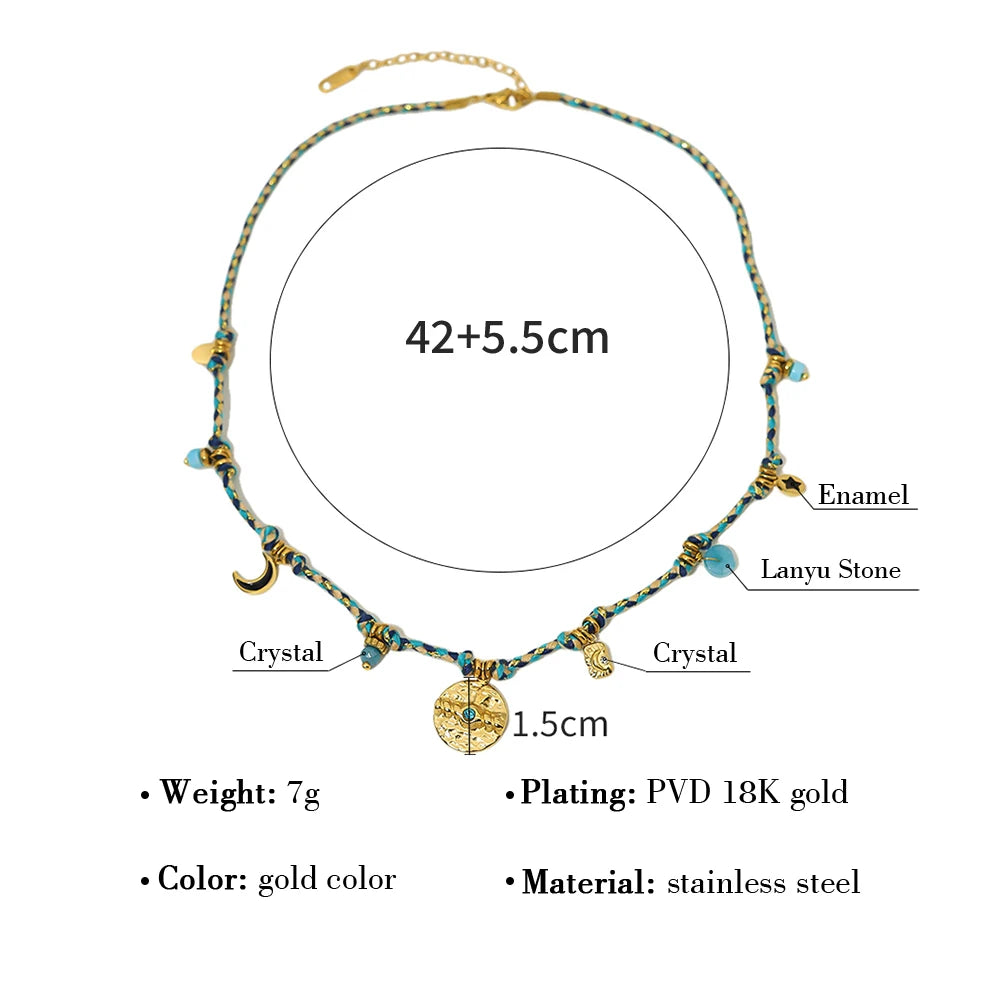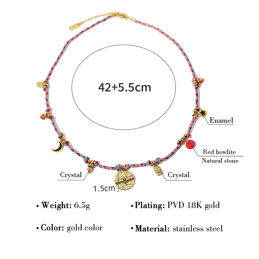 WILD & FREE Vintage Stainless Steel Charms Necklaces for Women Boho Pink Blue Rope Chains Bracelets Trendy Jewelry Sets