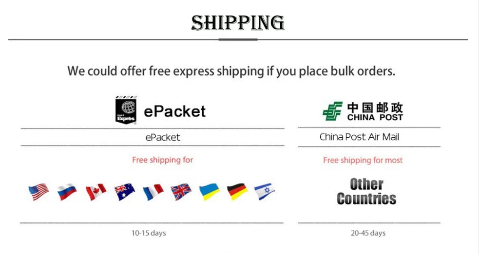 Orders can be returned or exchanged within 30 days of receiving the parcel, providing they are in original resalable condition.
