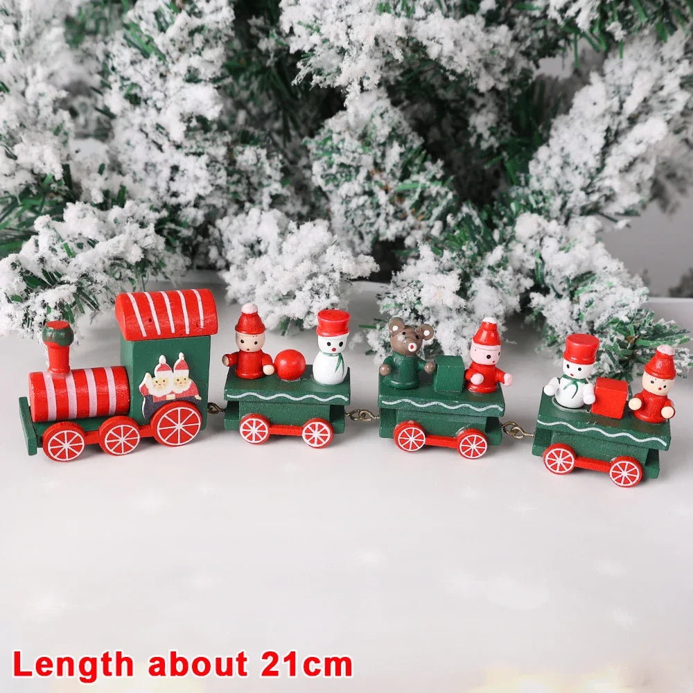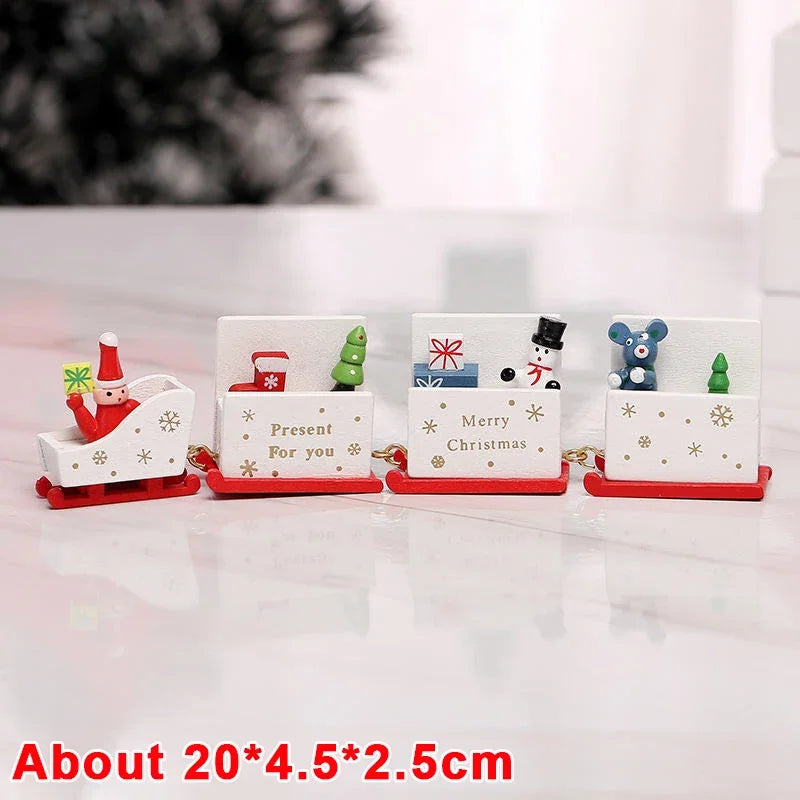 Wooden Train Christmas Ornaments Santa Cake Decoration Merry Christmas Navidad New Year Party Table Decoration Kids Gifts Toys